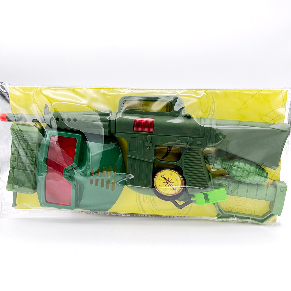 Gear up for action with the ultimate military rifle set! Packed with everything you need for epic pretend play, this set includes a toy rifle, grenade, knife, goggles, and more—perfect for little adventurers ready for a top-secret mission.