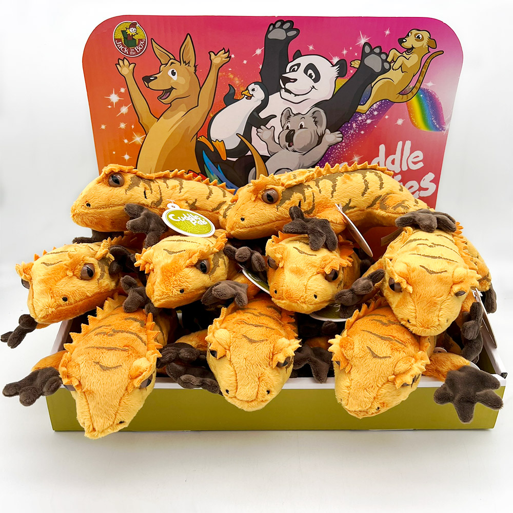 Joining the other lizards in the Cuddle Buddies range, it’s the Crested Gecko – the softest reptile you’ll ever get your hands on. Featuring the iconic crest that makes them stand out from their other gecko cousins, these cuddly cuties are ready to crawl straight off the shelves and into your hearts. Made from soft velour fabric and filed with polyester fibre and plastic pellets, these geckos are 30.5cm long – just right for playtime and naptime. Move over generic teddy bears – for those who take their playtime seriously the Cuddle Buddies Crested Gecko is the perfect plush.
