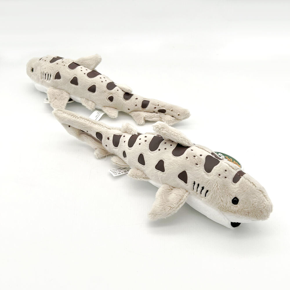 Looking for variety in your shark collection? The Cuddle Buddies Leopard Shark is a great addition to the underwater range! At cm long, these sharks feature detailed spots like their feline namesake in a beautiful colouration to help them stand out among the rest.  Made from soft velour fabric and filled with polyester fibre and plastic pellets, these sharks don’t just look great – they hug great at well! Bring the Cuddle Buddies Leopard Shark home today!